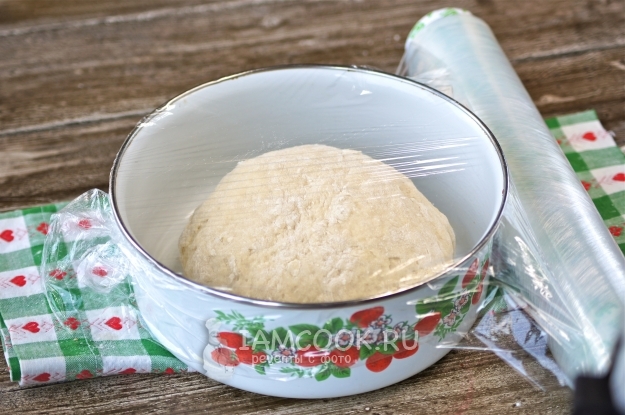 Тесто скатайте в шар, затяните пищевой пленкой и уберите в холодильник на 30 минут.