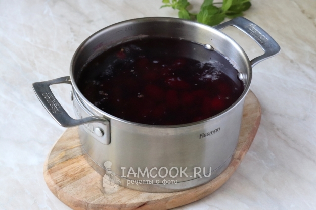Довести жидкость до повторного закипания и проварить на медленном огне 10 минут. Накрыть варочную ёмкость крышкой и дать компоту настояться.
