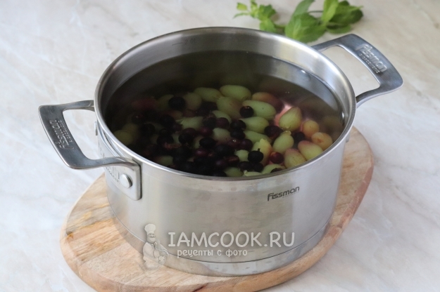 Для приготовления компота из винограда и смородины в кастрюле, подготовить продукты по списку к рецепту.