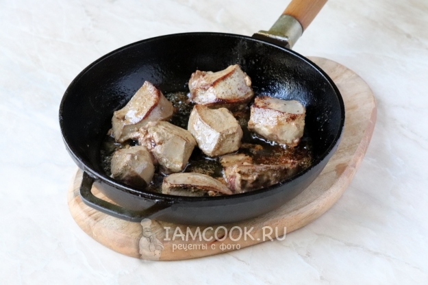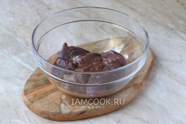 После чего субпродукт очистить от плёнок, крупных сосудов и снова промыть в холодной воде. Нарезать на порционные кусочки, посолить и поперчить по вкусу.