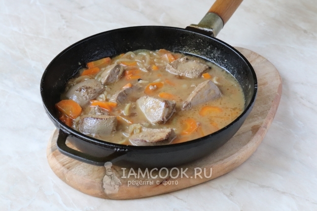 Вот и всё, тушеная свиная печень с луком и морковкой готова. Подавать её нужно в горячем виде, очень вкусно с отварным рисом или картофельным пюре.