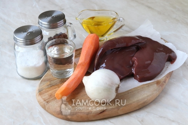 Для приготовления тушеной свиной печени с луком и морковью подготовить продукты по списку к рецепту.