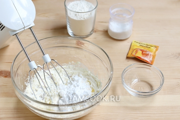 Любое песочное тесто требует определенной последовательности действий, которые начинаются со взбивания сливочного масла с сахарной пудрой до состояния пышной массы.