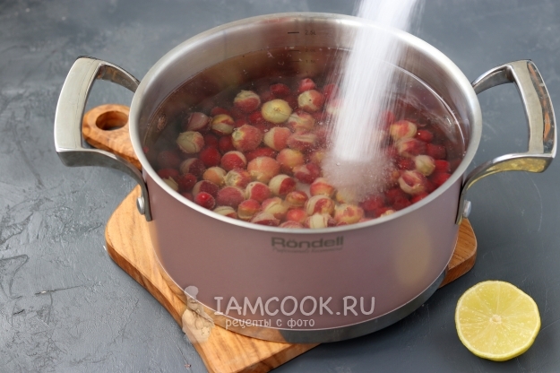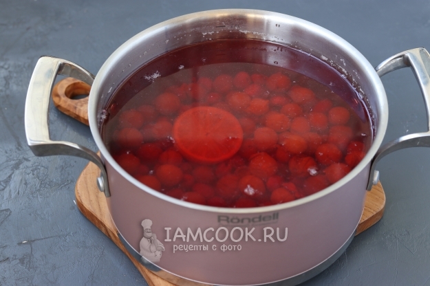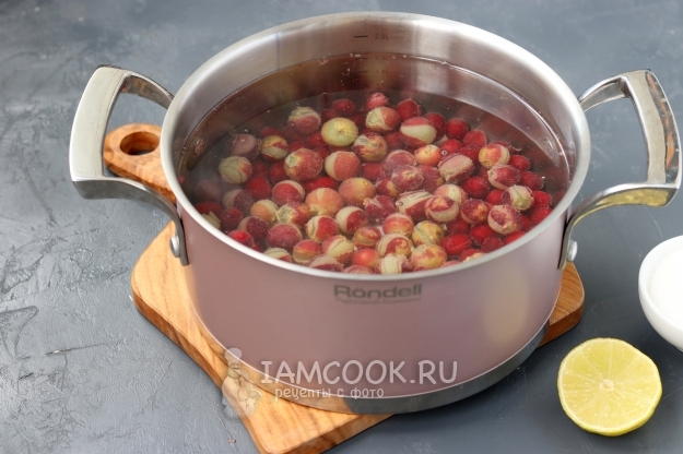 Вскипятить в кастрюле воду и засыпать в неё ягоды.
