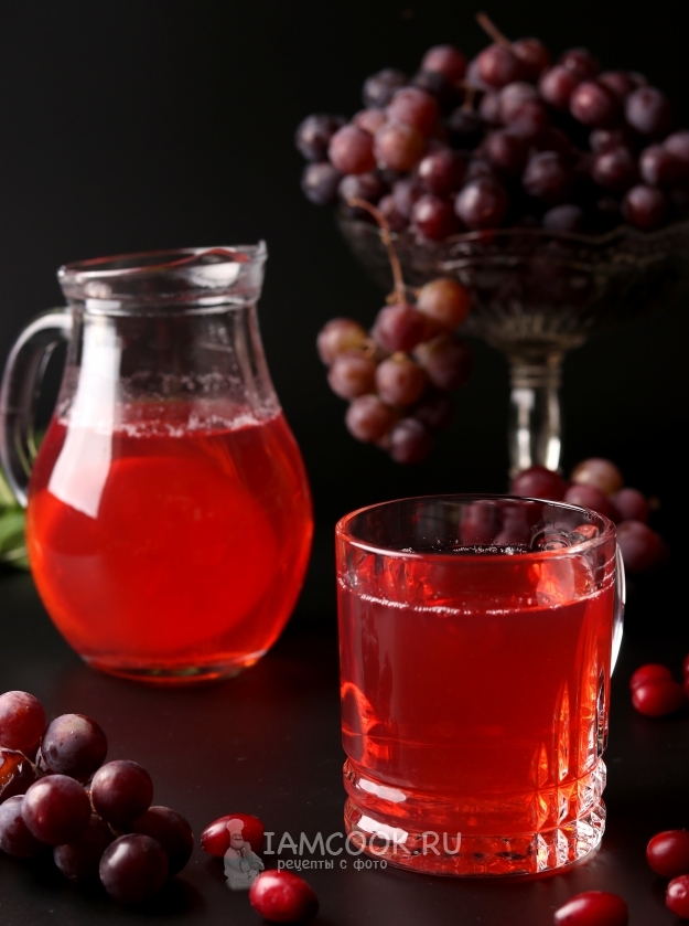 Остывший компот из винограда и кизила можно процедить и сразу подавать.