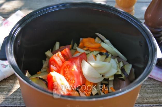 Вымойте овощи, баклажан нарежьте на небольшие кусочки.