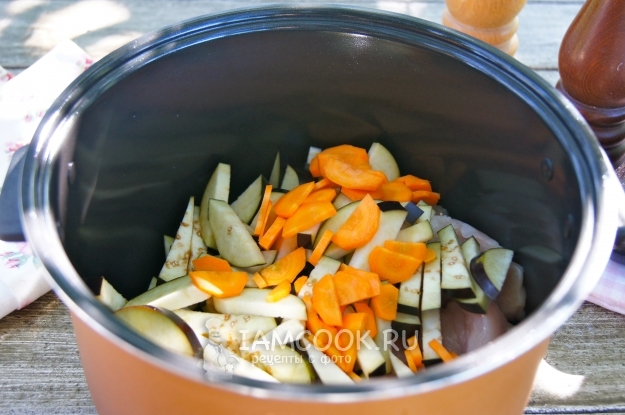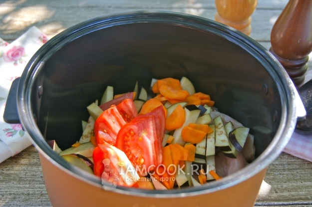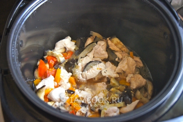 Поместите чашу в мультиварку, установите программу МУЛЬТИПОВАР, температуру - 120 градусов, время приготовления - 25 минут. Готовьте баклажаны с курицей в мультиварке до окончания программы.