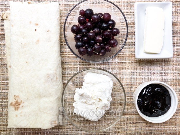 Для приготовления треугольников из лаваша с творогом и ягодами возьмите следующие продукты.