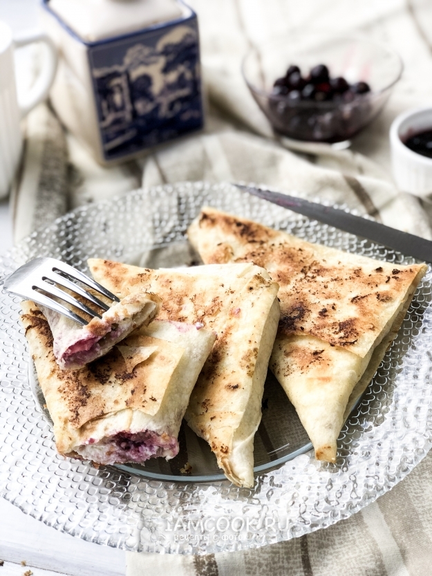 Треугольники из лаваша с творогом и ягодами готовы. Приятного аппетита.