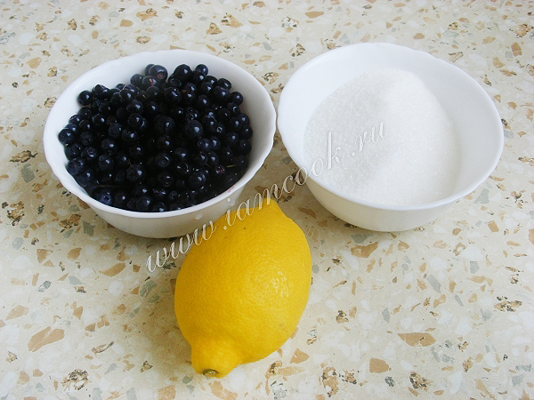 Вот ингредиенты – лимон, черника, сахар.
