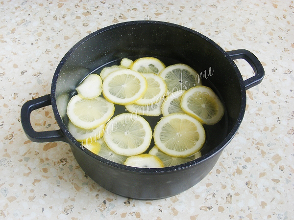 В кипящий сироп выложить лимоны и снять с огня.
