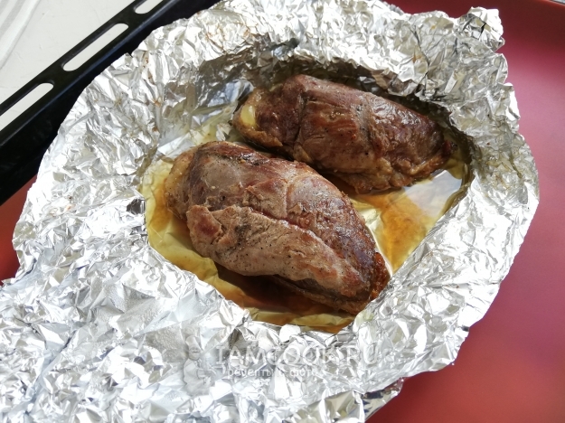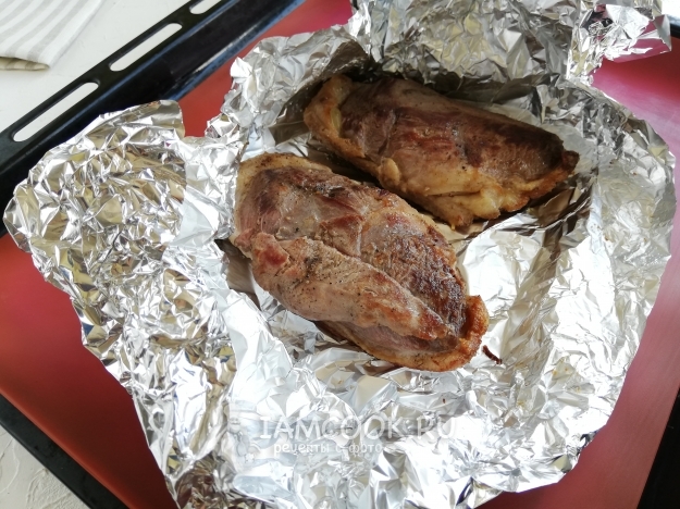 Перекладываем грудку на фольгу и заворачиваем.