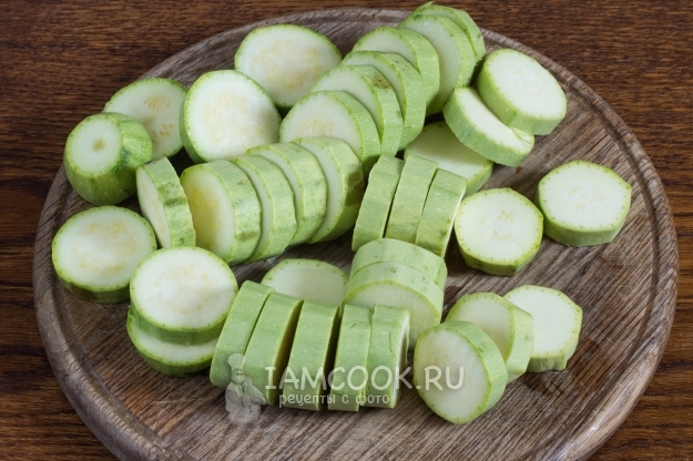 Кабачки промойте, срежьте кончики, нарежьте кружочками толщиной примерно 1 см.