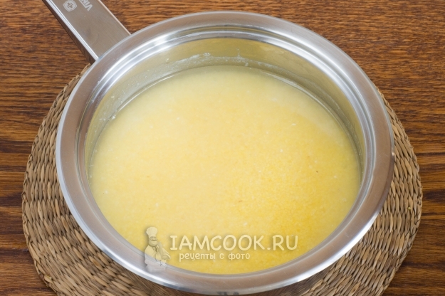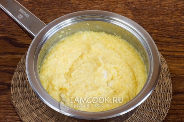Помешивая, лучше всего лопаткой, т.к. кукурузная крупа «любит» приставать ко дну, доведите кашу до кипения, уменьшите огонь до минимума и варите до загустения. Крупа хорошо и быстро впитывает воду. Затем накройте кастрюлю крышкой и варите на минимуме 15 минут, иногда помешивая кашу.