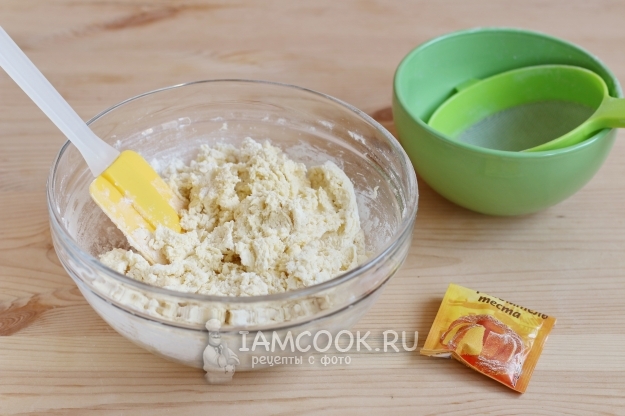 Просеиваем сюда же муку с разрыхлителем и сразу перемешиваем лопаткой. Делаем все быстро и убираем тесто в холодильник минимум на полчаса, а лучше на час.