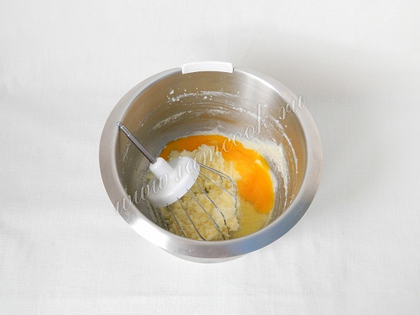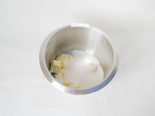 В чаше миксера взбиваем размягченное сливочное масло и сахар до пышной белой массы.