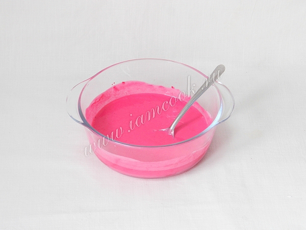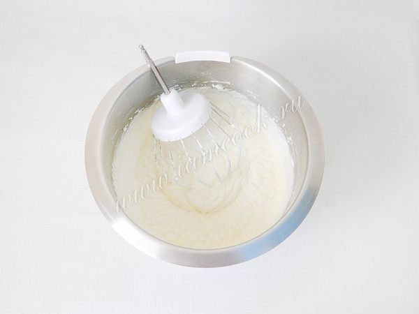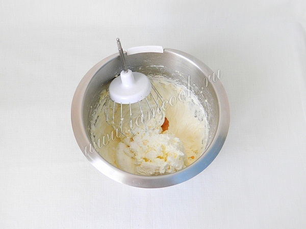 Взбиваем в однородную массу и на 30 минут оставляем в холодильнике (он тогда не растекается).