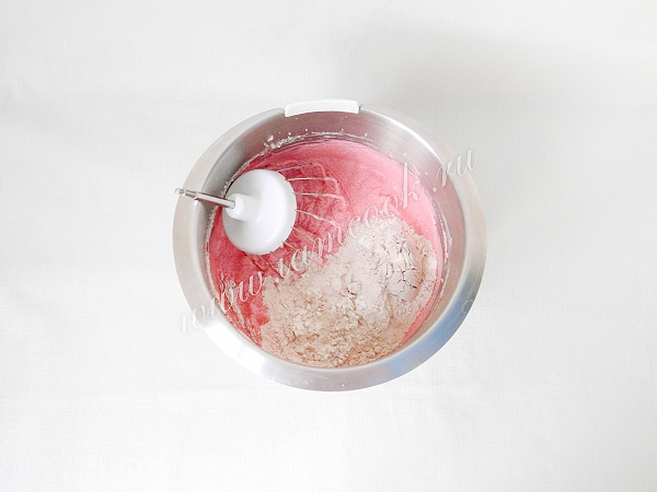 Вводим поочередно с мукой небольшими порциями, постоянно помешивая.