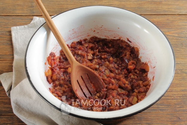 Отправляем нарезку в миску или сотейник, прогреваем при минимальном огне, часто мешаем, не допуская подгорания. Увариваем при кипении выделившейся влаги 10-15 минут.
