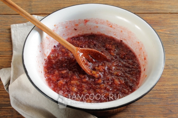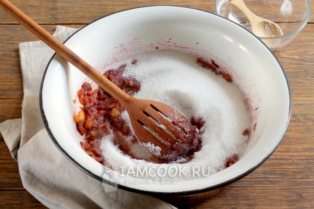 Всыпаем сахарный песок, размешиваем наш сливовый джем — без варки.