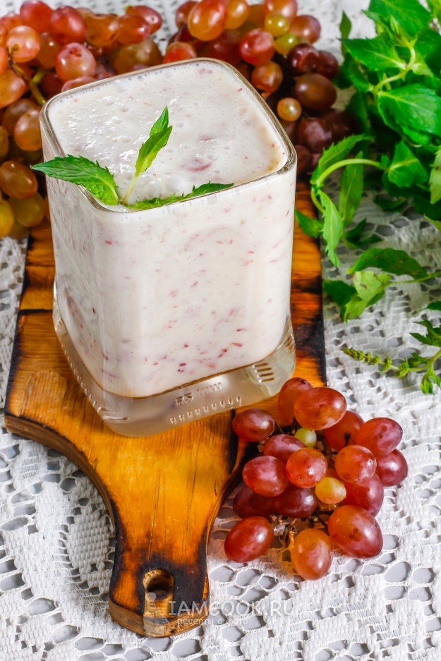 Перелейте приготовленный напиток в стакан или коктейльную банку. Теперь вы точно знаете, как приготовить виноградный смузи с йогуртом в домашних условиях.