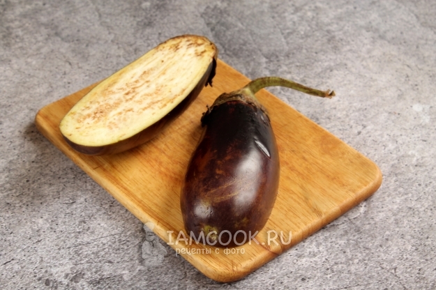 Чистый баклажан делим пополам.