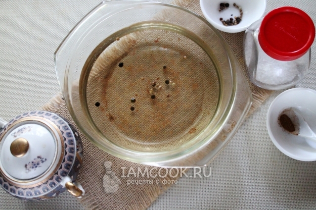 Маринад получается яркого цвета, необычный на вкус, пряный и сладкий, любители острого могут добавить горький перец стручком.