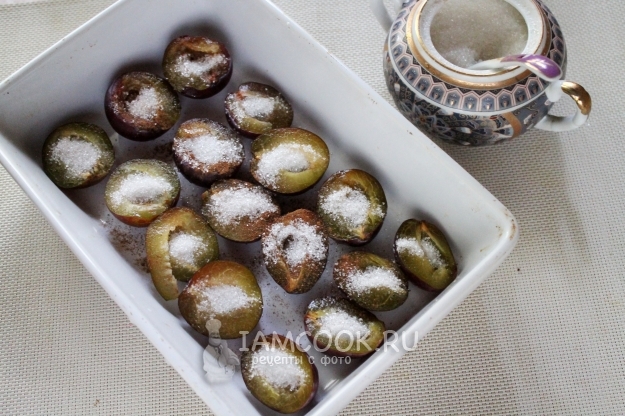Насыпьте в каждый плод немного сахара - треть чайной ложки, в среднем.