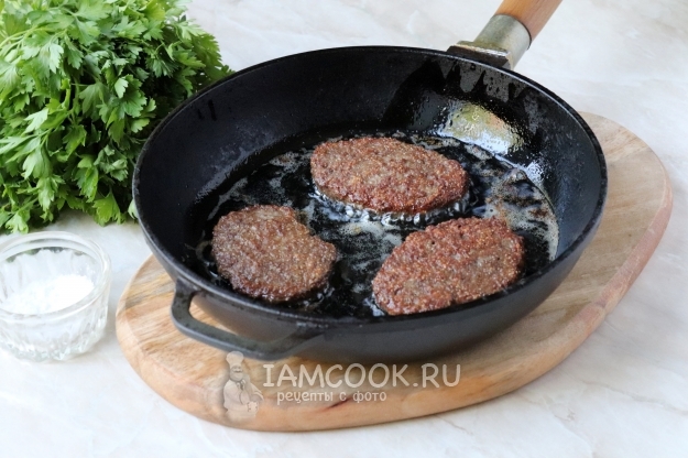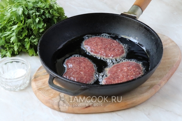 Тем временем разогреть сковороду с растительным маслом. Столовой ложкой выложить печёночное тесто, формируя овальные заготовки.