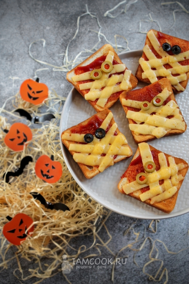 Тосты «Мумии» с сыром готовы, веселого вам Хэллоуина и...