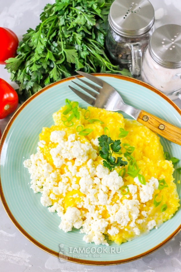 Затем выложите кукурузную кашу на тарелки, присыпьте измельченной брынзой или соленым творогом. Украсьте измельченным зеленым луком и подайте к столу теплой. Банош по-закарпатски готов к дегустации.