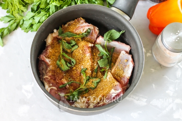 Не забывайте на слой мяса выложить немного мяты: свежей или сушеной - именно она и нейтрализует аромат мяса.