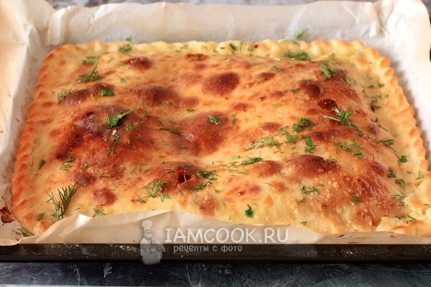Достаньте деревенскую пиццу из духовки и сразу же смажьте ее оставшимся сливочным маслом, посыпьте зеленью и подавайте. У меня получилось не столь красиво, но зато так же вкусно.