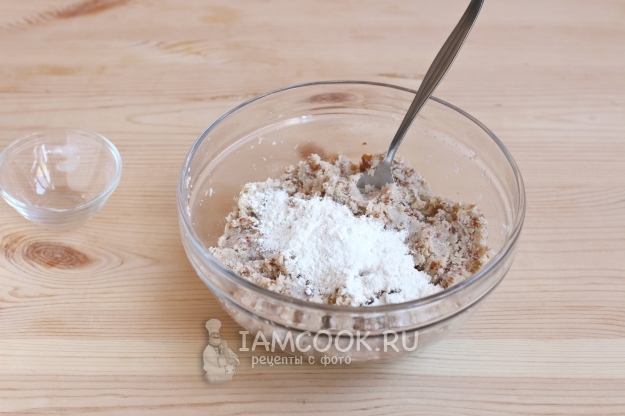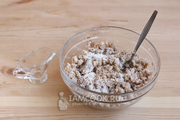 Вливаем растительное масло, всыпаем остальную кокосовую стружку и снова смешиваем.