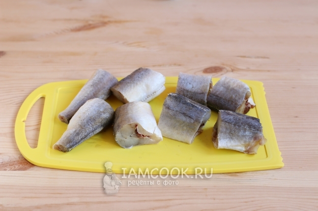 Размороженную навагу очистим от мелкой чешуи, отрежем плавники, удалим внутренности и тщательно промоем под проточной водой. После нарежем порционными кусочками.