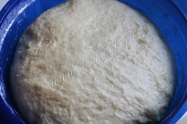 Тесто накроем и дадим постоять примерно 2 часа. Вот такое оно у нас должно быть.