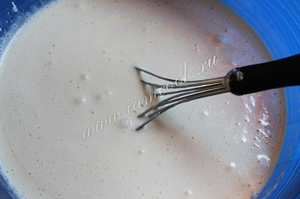Разведем в теплом молоке сухие дрожжи. Дадим им постоять, чтобы поднялась шапочка. Затем добавим сметану и взбитые яйца с сахаром. А также соль и ванильный сахар.