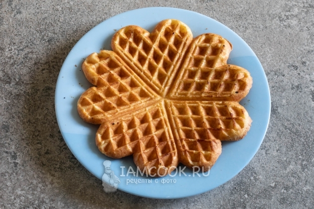 Ну, и выпекаем заварные вафли в вафельнице до золотистости (2-3 минуты). Извлекаем из вафельницы вилкой.