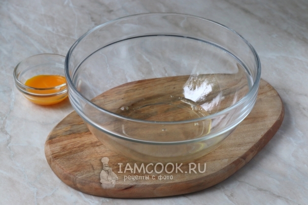 Куриное яйцо тщательно помоем, обсушим и разделим на желток и белок. Желток нам не понадобится. Отправим его в холодильник и будем использовать для приготовления других блюд.