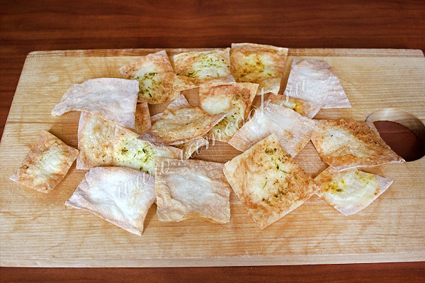 Чипсы из лаваша со сметаной готовы.