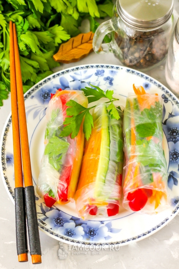 Спринг-роллы стали настолько популярными, что ни один ресторан или кафе азиатской кухни не обходится без такого блюда. Готовить их чрезвычайно просто - достаточно лишь намочить рисовую бумагу в воде и выложить ее на рабочую поверхность или тарелку, блюдо, а на нее выложить овощные нарезки и свернуть рулетиком, завернув края. Причем овощи вы можете приобретать по своему вкусу: помидоры, перец, морковь, лук репчатый, огурцы и прочие. Не забывайте подавать спринг-роллы с различными соусами: соевым, ореховым, спайси и т.д.