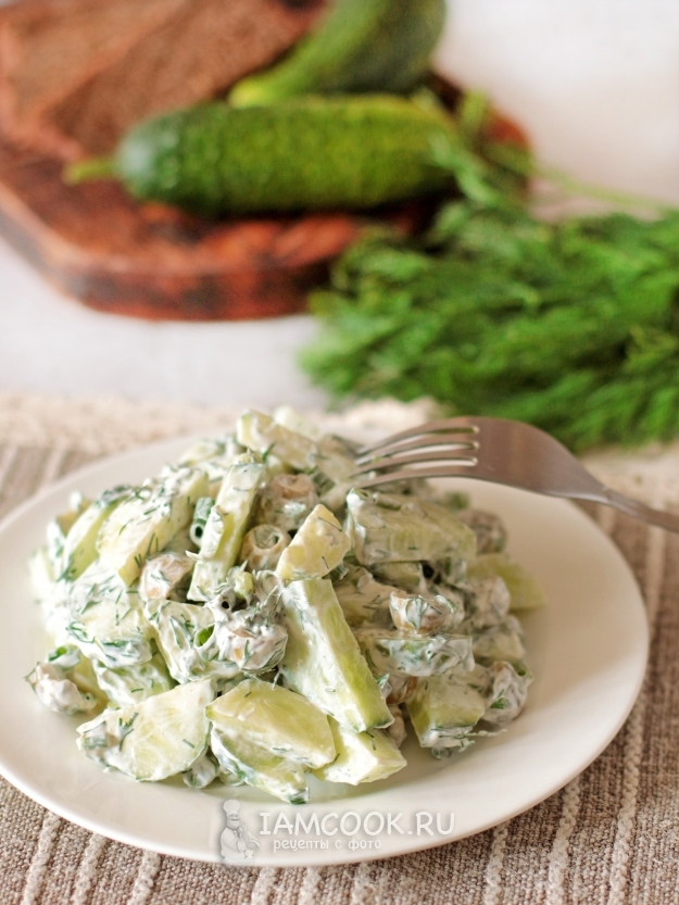 Для меня это еще один удачный союз огурцов, оливок и сметаны. Даже если вы не очень жалуете огурцы, то в таком сочетании они вам понравятся. Сметана дополняет нейтральный вкус огурцов молочной кислинкой, укроп придает аромат, а оливки дают соль и пикантность. Все это можно сдобрить щепотью черного перца, и тогда салат придется по вкусу даже мужчинам, любителям острого.
