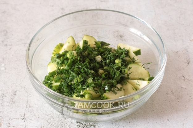 Приготовление простое, как дважды два. Нарезать, смешать и сдобрить.