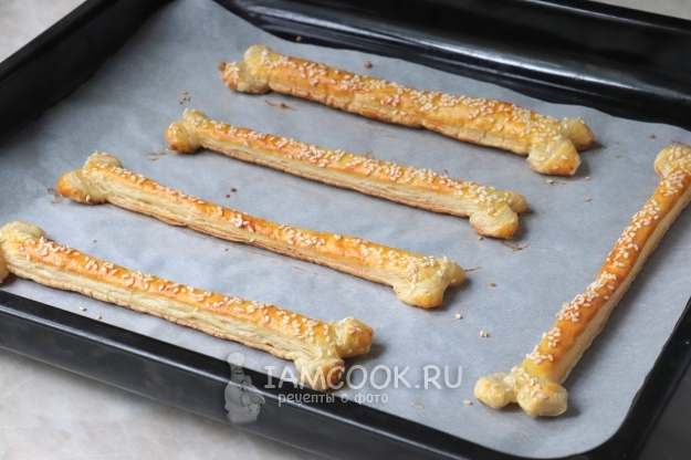 Отправить противень в разогретую до 180 градусов духовку. Выпекать "Косточки" до красивого румяного цвета - около 10-15 минут, в зависимости от вашей плиты.