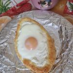 Снова поместите заготовку в духовку на 5-10 минут (время зависит от свойств духовки) и послеживайте. Когда бортики "лодочки" хорошо зарумянятся, а сыр в начинке расплавится, разбейте на начинку яйцо.