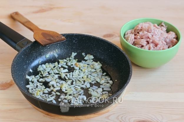 Обжарим в сковороде на растительном масле измельченный лук до прозрачности.