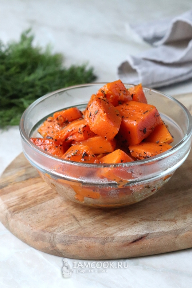 Вот и всё, очень вкусная пряная тыква, запечённая в мультиварке, готова. Переложить её в подходящую миску и в тёплом виде подавать на стол. Такая тыква станет отличным дополнением к мясу, рыбе и разнообразным кашам, особенно вкусно с отварным рисом.