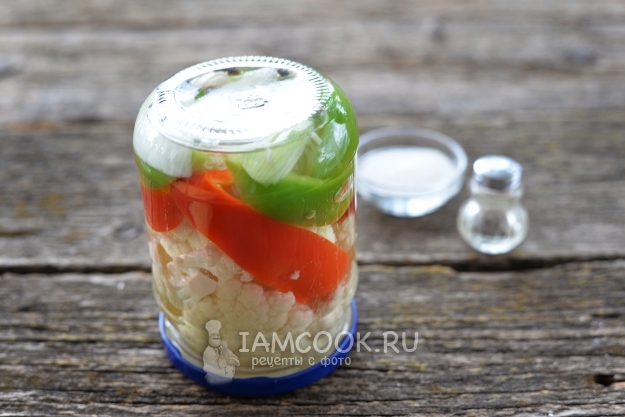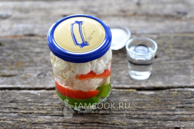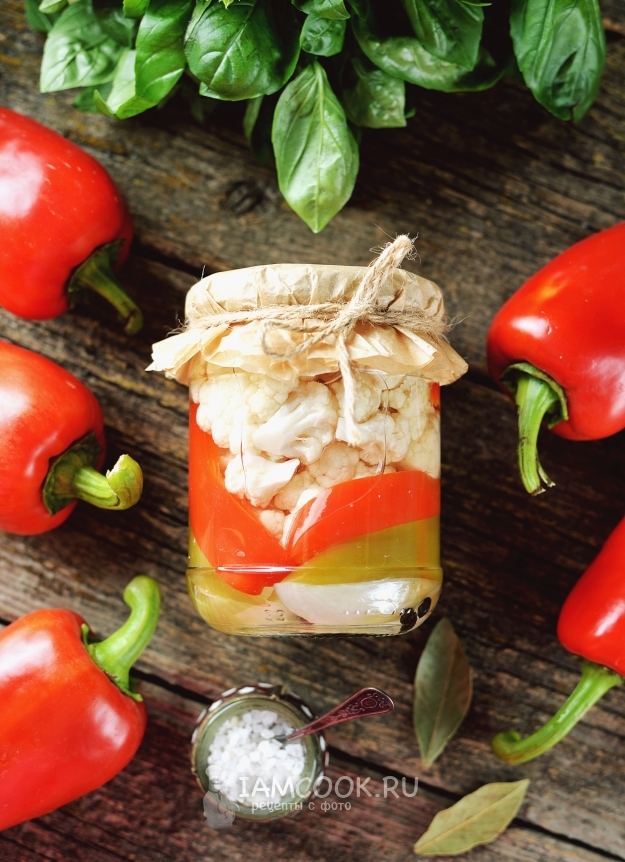 Спустя пару месяцев консервация можно открывать. Хрустящая цветная капуста с перцем на зиму готова.