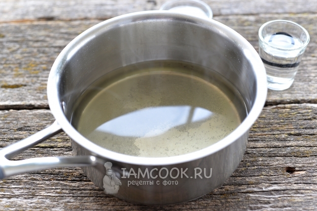 Спустя время слейте воду из банок в кастрюлю или сотейник, поставьте на плиту, доведите до кипения. Если воды получилось меньше чем 0,5 литра, то обязательно долейте до отметки. Всыпьте соль и сахар, помешивайте по полного растворения. Влейте уксус, быстро разлейте маринад по баночкам, он должен слегка выливаться через горлышко, закрутите крышками.
