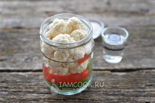 Разберите кочан капусты на соцветия, наполните ими банки до верху.